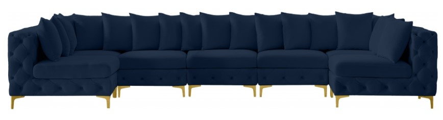 Lean back and relax on this Tremblay sectional. Featuring soft navy velvet upholstery with deep button tufting, this sectional adds a bold touch to any living space. A complete set of gold and chrome legs are included, so you can change it up to suit your home décor.Read More