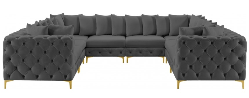 Lean back and relax on this Tremblay sectional. Featuring soft grey velvet upholstery with deep button tufting, this sectional adds a bold touch to any living space. A complete set of gold and chrome legs are included, so you can change it up to suit your home décor.Read More