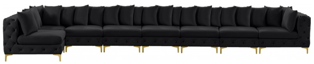 Lean back and relax on this Tremblay sectional. Featuring soft black velvet upholstery with deep button tufting, this sectional adds a bold touch to any living space. A complete set of gold and chrome legs are included, so you can change it up to suit your home décor.Read More