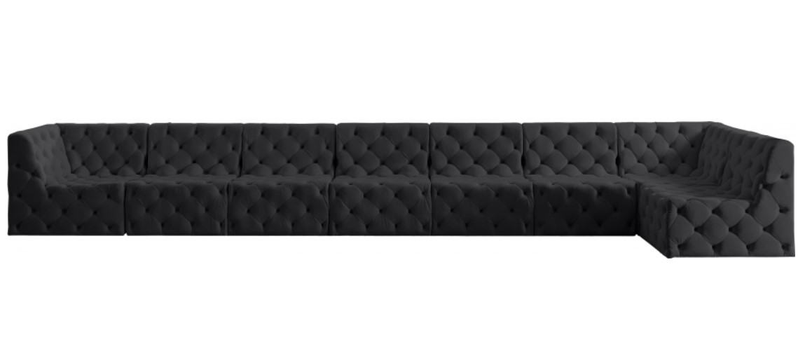 Elegant and eye-catching, the stunning black velvet Tuft Modular Sectional from Meridian Furniture is the perfect addition to any space. The deep button tufting adds a touch of sophistication to the sectional, making it a statement piece that will elevate any decor.Read More