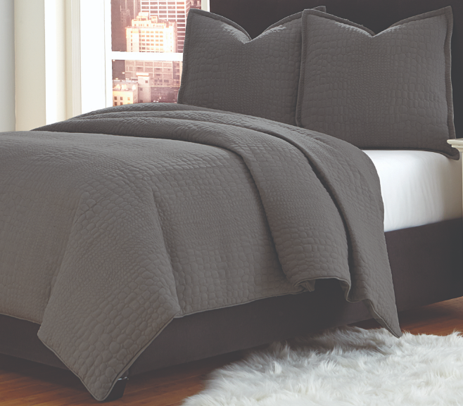The Trent coverlet/duvet set is the perfect layering piece or alternative bed cover for a fresh solid look! The pebble embroidery stitch pattern brings a subtle touch of texture without overwhelming the room, while the soft gray tone pairs easily with existing styles and decor.Read More